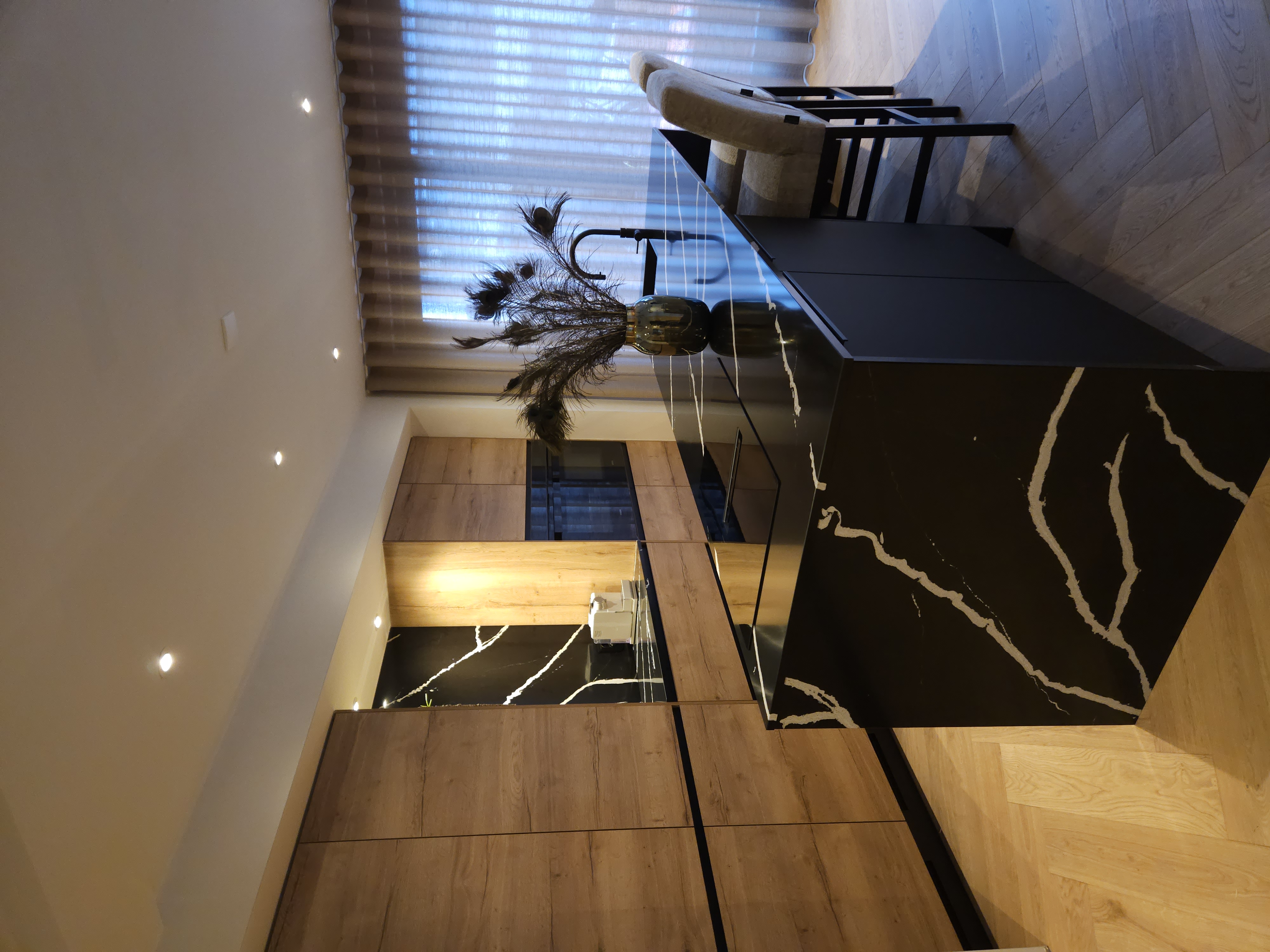 Dezelfde signatuur loopt door van keuken naar badkamer. Warme houttinten, diepe zwartnuances en heldere lijnen zorgen voor een rustig geheel, terwijl elk vertrek zijn eigen wowmoment heeft. Functioneel blijft het ook dankzij veel opbergruimte, onderhoudsvriendelijke materialen en apparatuur op de juiste plek.
