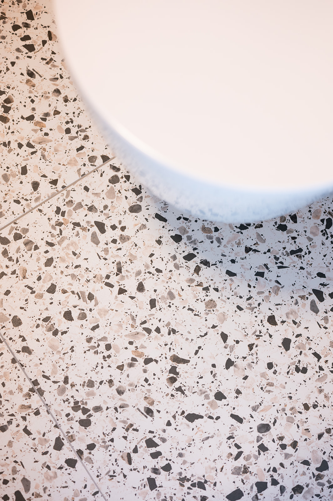 Diepblauw in de keuken, groen en terrazzo in sanitair en messing als verbindend detail. Het resultaat is rustig, modern en persoonlijk.